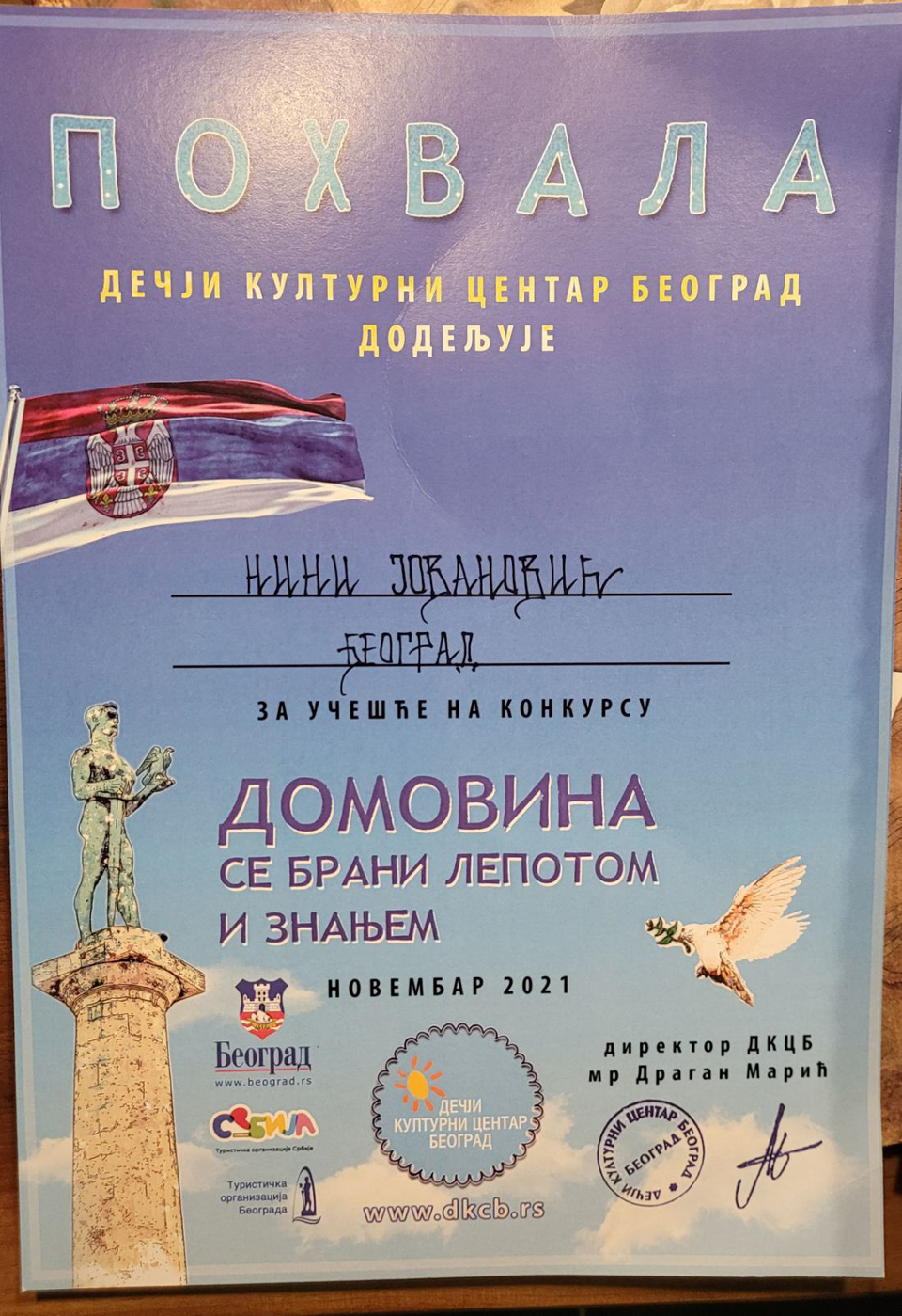 На Литерарном конкурсу ,,Домовина се брани лепотом и знањем“ похвалу је освојила Нина Јовановић, ученица одељења IV3. Песма ове ученице ће бити објављена у електронском часопису ,,Чика Јова Змај“.