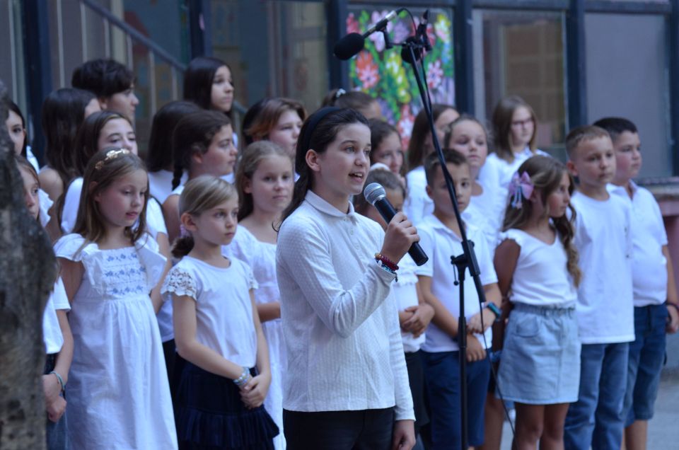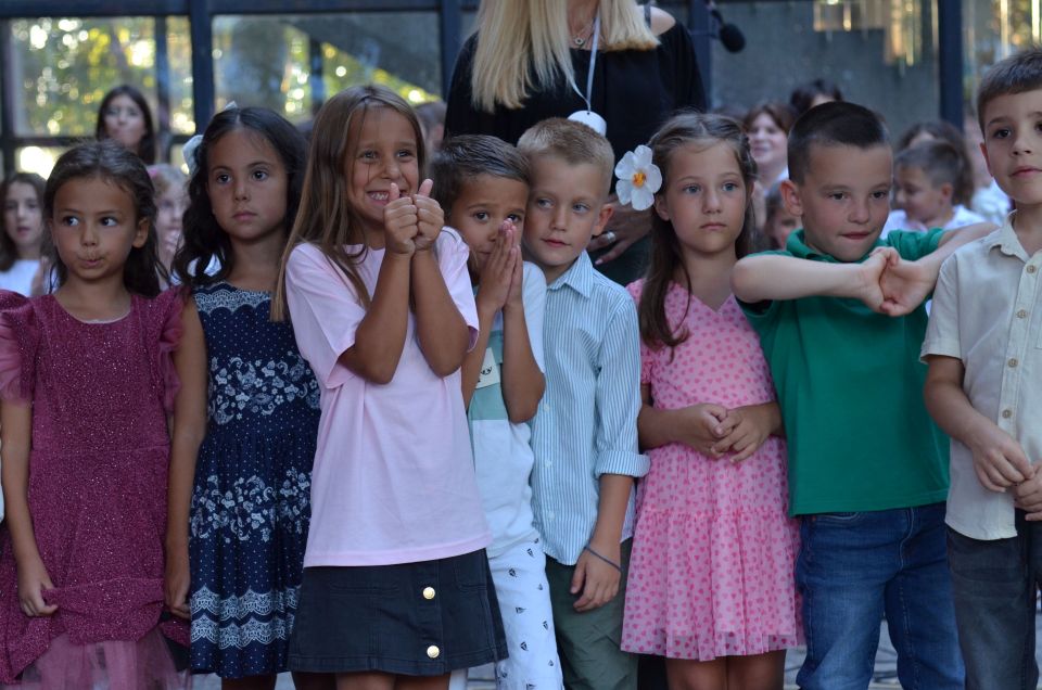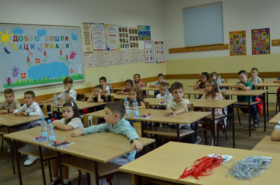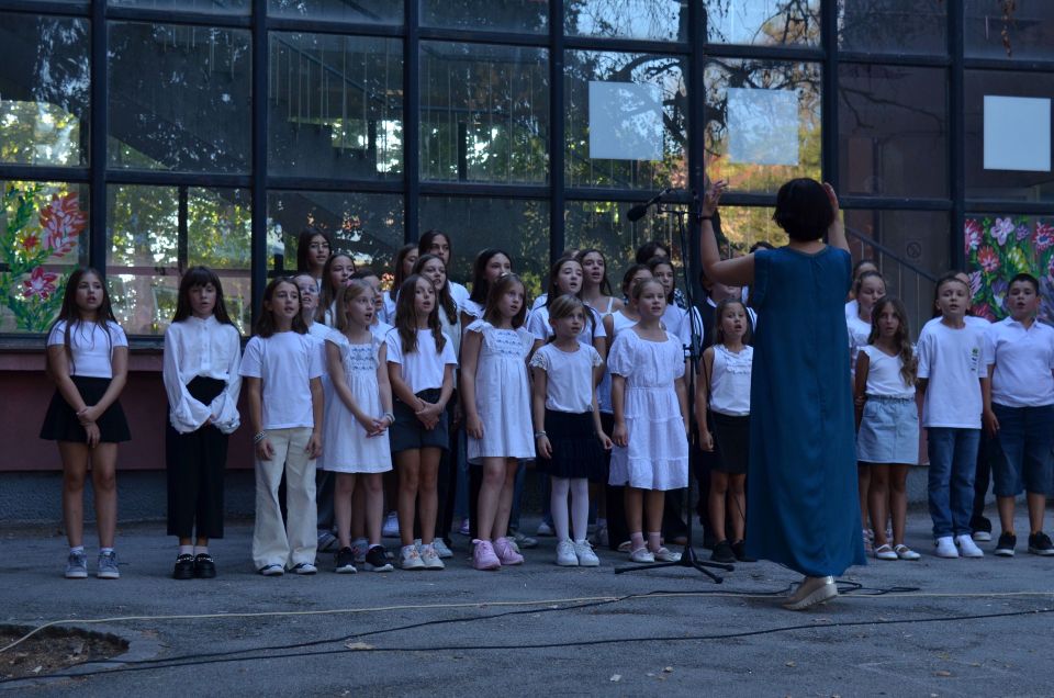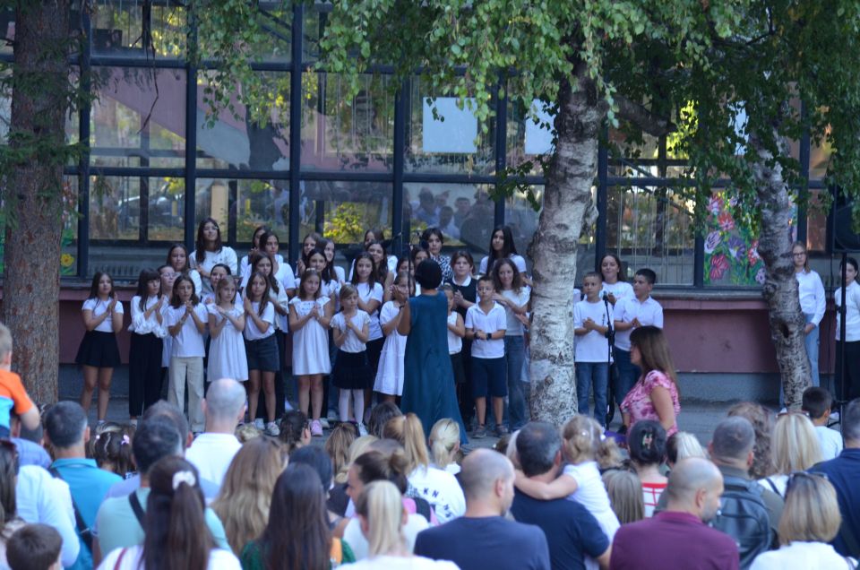 И ученици старијих разреда улепшали су им први школски дан рецитацијама и песмама које је извео школски хор у пратњи наставнице музичке културе Милене Крстић.
