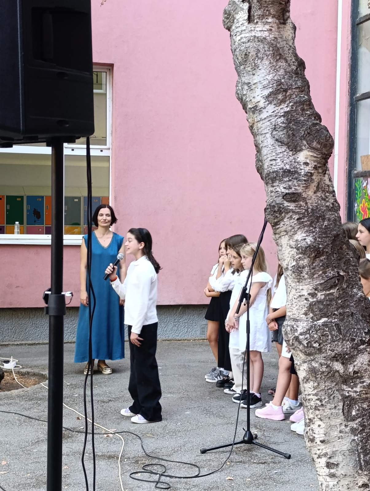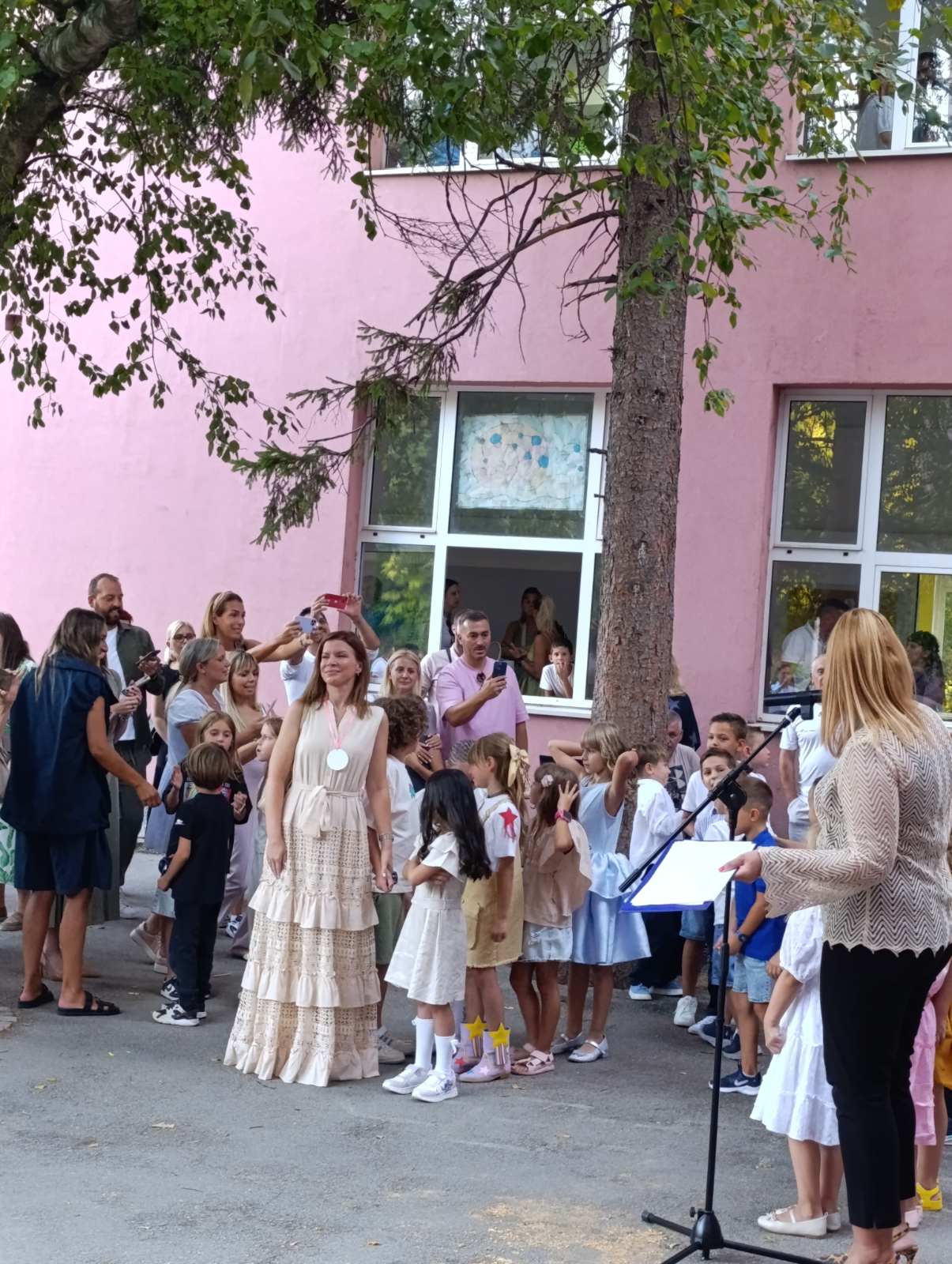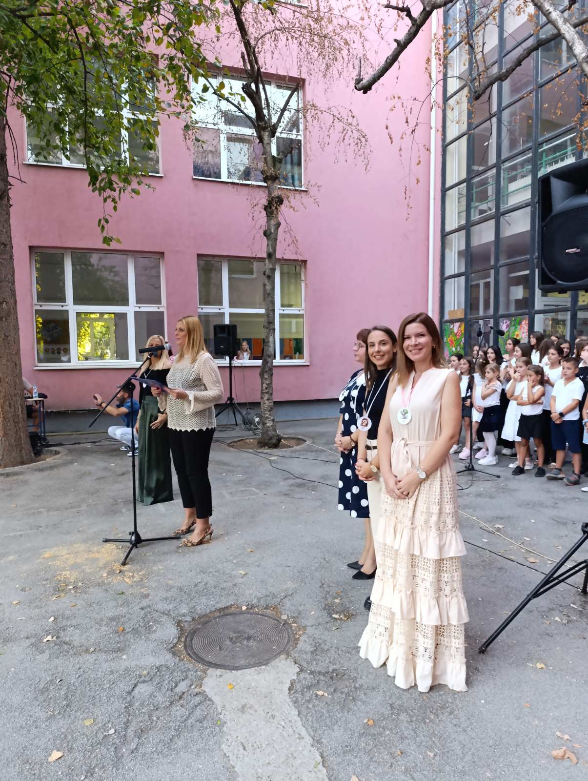 И ученици старијих разреда улепшали су им први школски дан рецитацијама и песмама које је извео школски хор у пратњи наставнице музичке културе Милене Крстић.